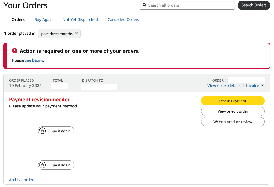 Če dam "Revise Payment", lahko samo zamenjam plačilno sredstvo.. Ne vidim nobenih "opomb"... Mogoče sem jih spregledal..