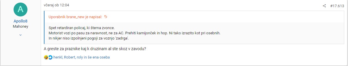 Sej problem je v tem da ocitno ti ne bi smel voziti, da ti koherentno pisanje ne gre od rok pa itak vsakodnevno dokazujes.Neeeeeee Hanzi!