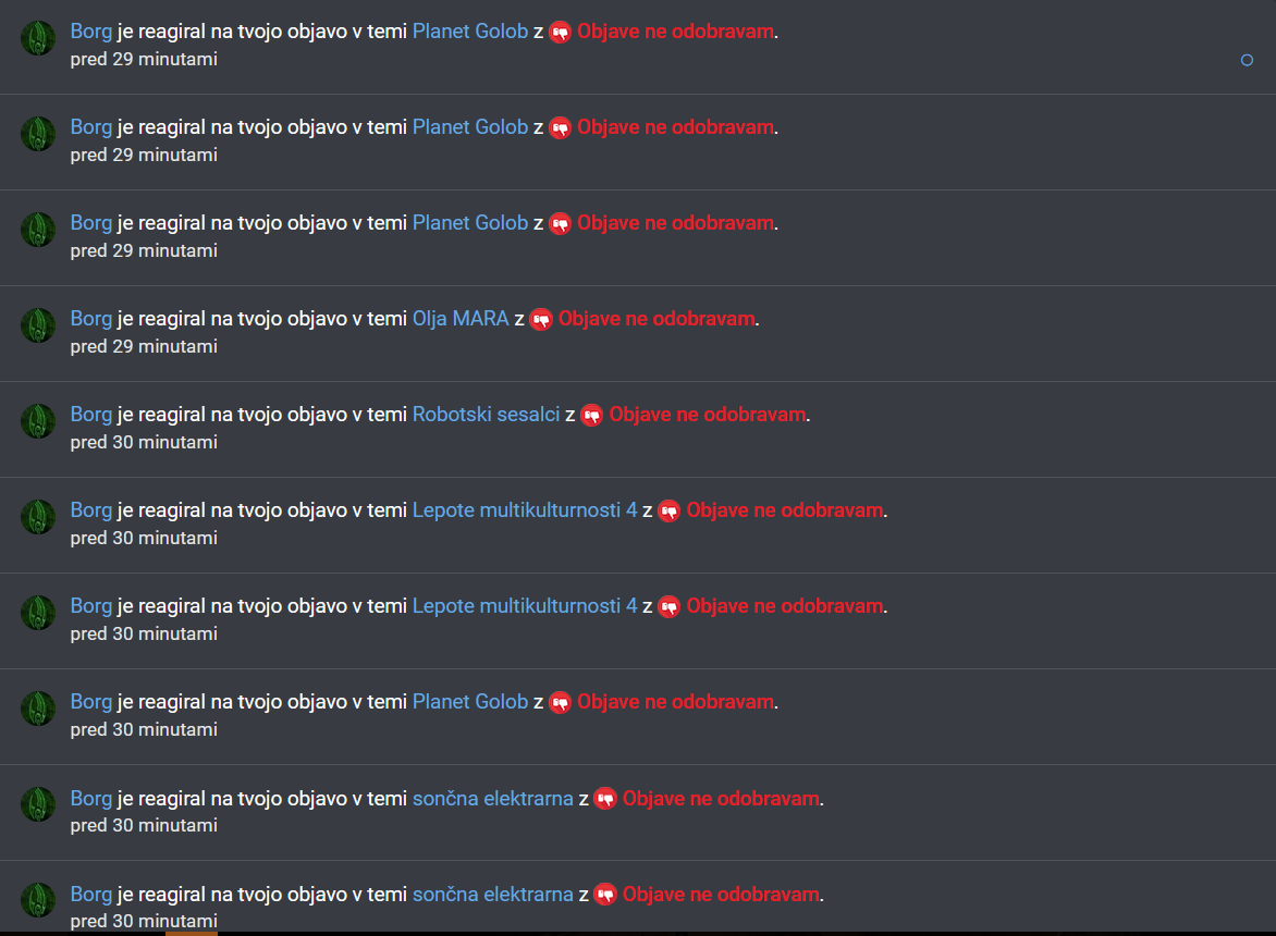 Meni je, odkar sem tebi dal smeškota na tole tvojo objavo, nastrelal točno 15 tardečihOd včeraj do danes mi je nastrelal še kakih 100 novih. Pa kje najde vse te objave?![]()