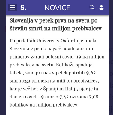 Slovenija v petek prva na svetu po številu smrti na milijon prebivalcev.![]()