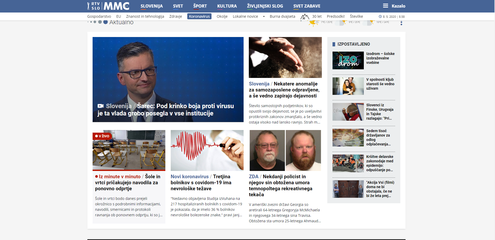 Je še kdo opazil, kako močno na levo se je nagnil RTVSLO.si? Na naslovnici non stop izpostavljajo tiste novice, ki ali blatijo desnico (SDS, JJ) ali hvalijo levico (Šarec & Co.). Pozitivnih novic v povezavi s COVID19 - da bi se pohvalilo bilo kaj v povezavi z aktivnostmi vlade - NI. VSe je negativno, samo to je izpostavljeno. Lahko si dejansko privoščijo, da imajo isto novico po 24ur izpostavljeno na naslovnici. Drugi mediji rotirajo novice zaradi boljših dosegov, relevantnosti vsebin itd...
