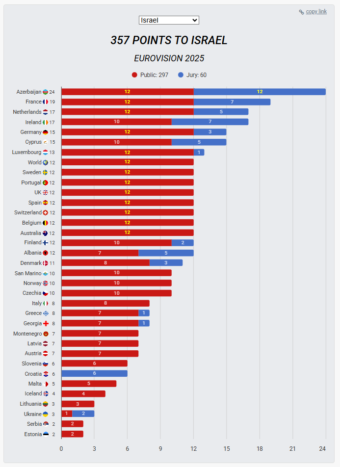 Se je pač veliko "strokovnih" žirij opredelilo "politično", kar je tudi prav - če so prej zahtevali njihovo izključitev (kar bi bilo prav) je logično, da jim sedaj ne moreš dat točk.