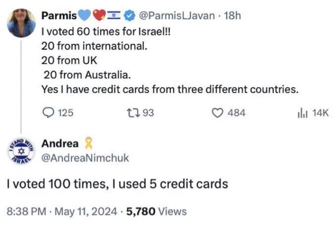 očitno bila kampanija, da bi bila evrovizija v Izraelu drug let in bi se širša evropa še bolj predklonla kot do sedaj... no to jim ni ratalo.