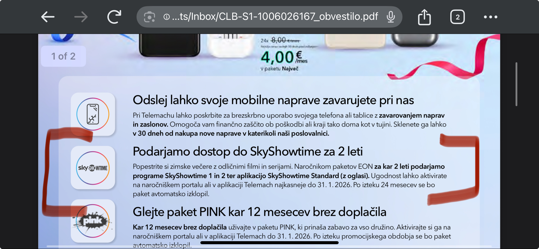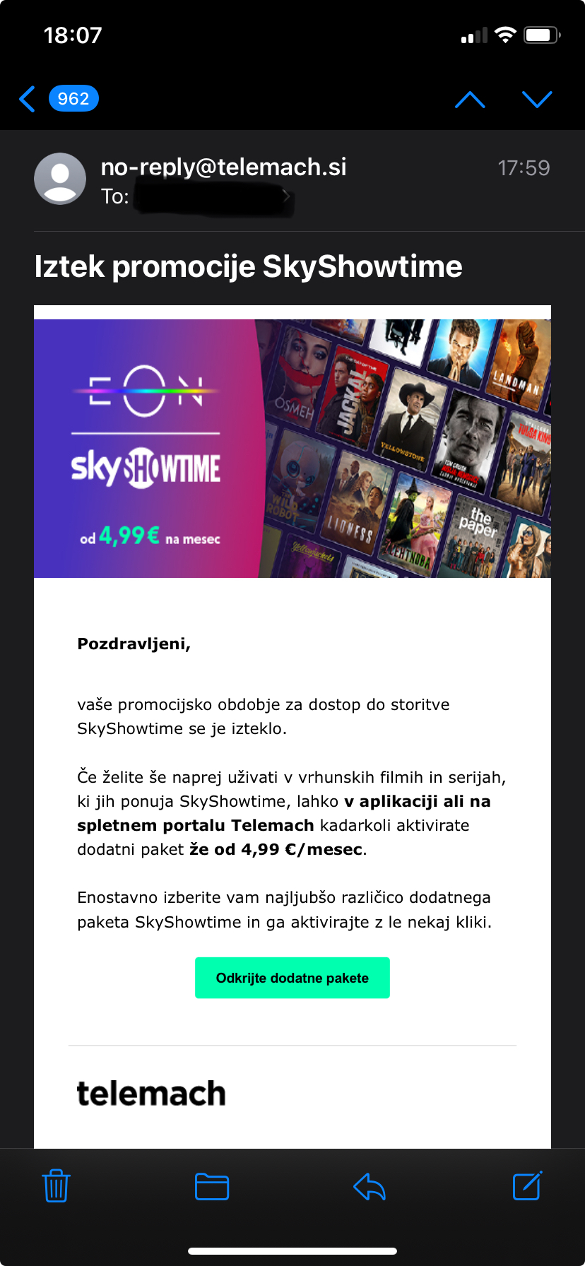 5.1 mi ob racunu posljejo pdf z obvestilom, da mi za dve leti podarjajo Skyshowtime..