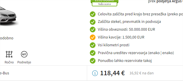 A potem misliš, da bi bila ta agencija OK?Aleluja za take izposojevalce ki ne komplicirajo. Placas na licu mesta in to je to. Na zalost jih je treba iskat z lucjo. Dobesedno. Zajeb pri espanjolih- (velja za juzni del) je ta da ne dovolijo voznjo do Portugala. Ce pa ze te ociganijo za vrednost letalske karte. Sicer pa iscem taisto info o dobrem ponudniku rentanja avta za Sevillo.