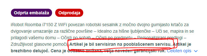Edit: tule je 305€ z dvema letoma garancije (280€+ 25€ za dodatno leto garancije): https://www.mishop.si/xiaomi-mi-robot-vacuum-mop-p-crn-1101.html