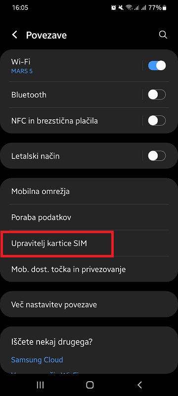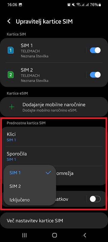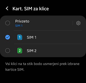 Moraš it na nastavitve desno tri pike in tam izbrat katero želiš, se pravi sim1.