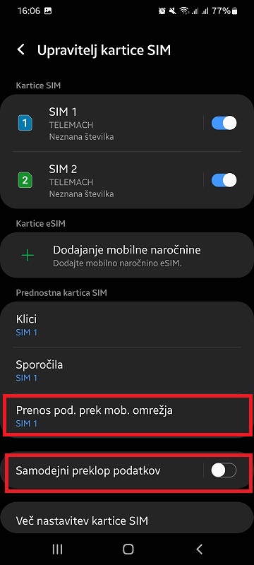 Tiste nastavitve so za prenos podatkov. Meni prenos podatkov ne jemlje iz sim2