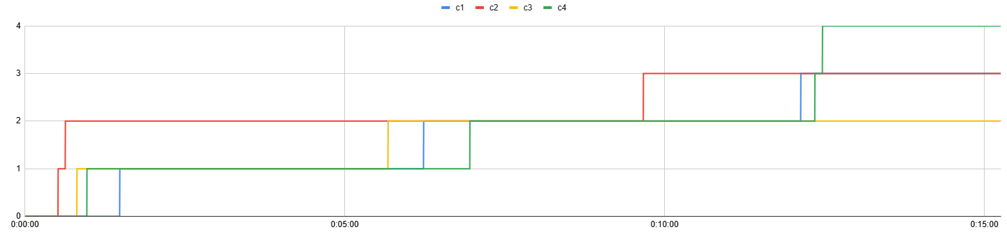 Za začetek sem v obd11 posnel "Number of misfire" na vseh cilindrih za 15min vožnje: