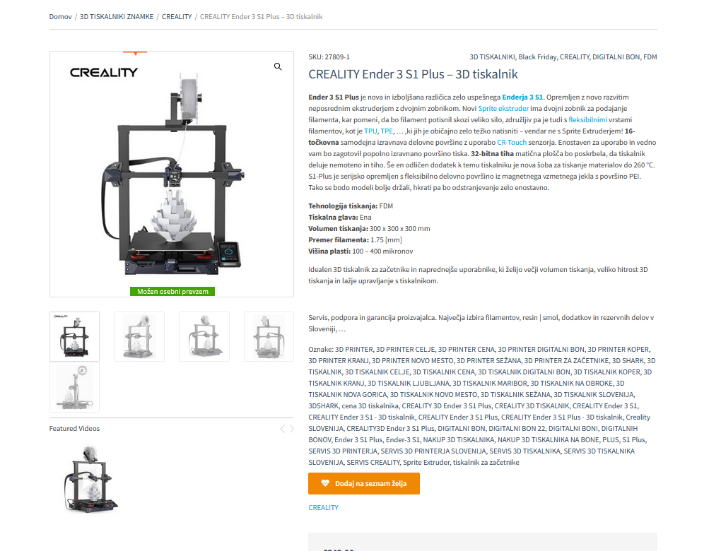 Imaš 3D sharku pejt v medensko ulico šiška Super so imajo vse na zalogi no povečini. P.S. Pri njih je najslabši filament boljši kot marsikje tisti najboljši.Je možno kje v Ljubljani kupit filament, obstaja kakšna trgovina. Azurefilm pošilja preko spleta, jaz pa bi rabil jutri nekaj.