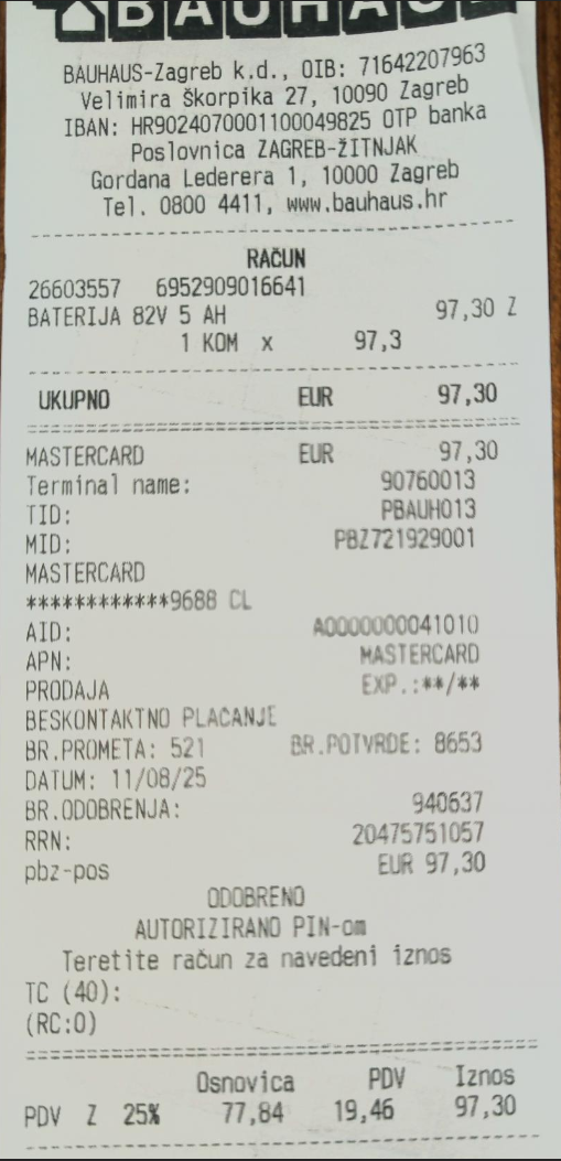 Torej samo celice so cca 115€ s poštnino. Potem rabiš še nikeljeve trakove in 3d sprintane holderje, ki jih je treba prej zmodelirat.