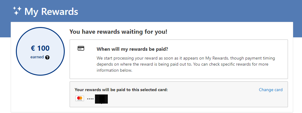 Wallet je pri meni isti. Pod My rewards pa imam tako kot spodaj in mi normalno plačajo vse na kartico. Kartico sem vnesel pod setting>credit cards