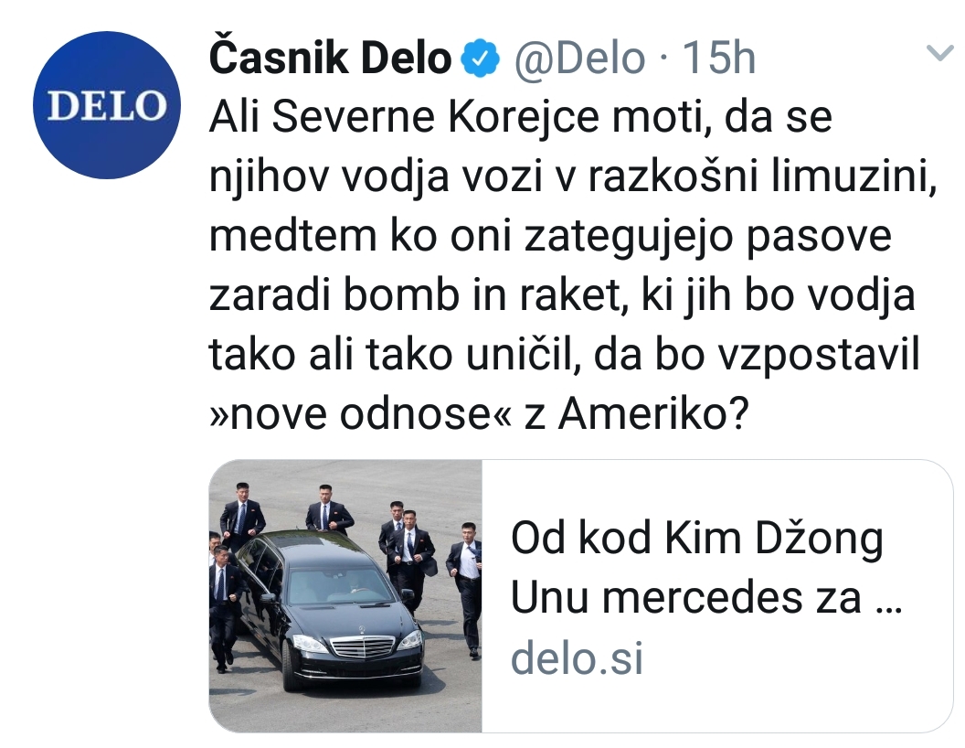 Luštno je pa sedaj opazovati zvezdaše. Prej so oboževali in častili Kima kot Boga, sedaj pa ko je dal Trumpu roko pa nabijajo da je Kim diktator in da ne spoštuje svojih ljudi :valjamse::valjamse::valjamse:.