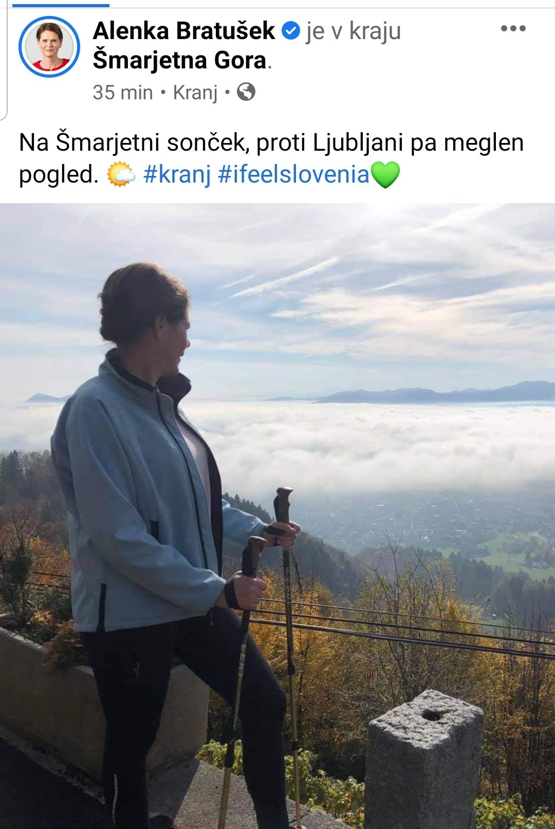 In pri tem Bratuškova ne krši nobenih odredb vlade. Je v svoji občini, kak km od doma, po palicah se vidi da je športno aktivna, slikana na vzponu (ne na vrhu), torej ne potrebuje maske.