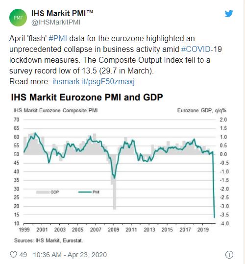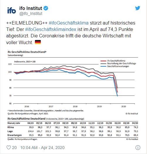 Pa sej to je pričakovan graf, to je logično če pošlješ domov 3/4 ljudi in ustaviš gospodarstvo. Borze bodo zanihale ob rezultatih potem, ko se bo gospodarstvo spet zagnalo in je vse odvisno od tega kako hitro bo šla ta krivulja nazaj na prejšnje stanje. Če bo šlo prepočasi, bo to vidno tudi na borzah.