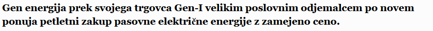 Torej.. Gen energija (ki je lastnik elektrike iz JEK) prodaja direktno elektriko iz JEKa izključno podjetju GEN-i, Šele GEN -i jo prodaja naprej končnim uporabnikom (industriji in gospodinjstvom)...