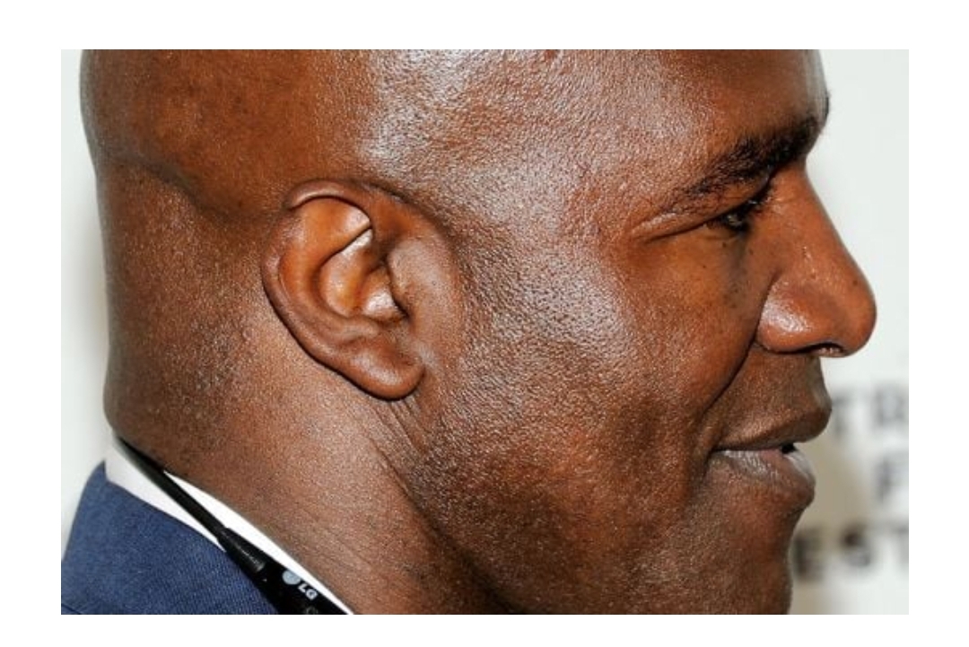 Pa ne samo udarcev, tako danes izgleda Holyfieldovo uho ki mu ga je enkrat v preteklosti odgriznil Tyson.