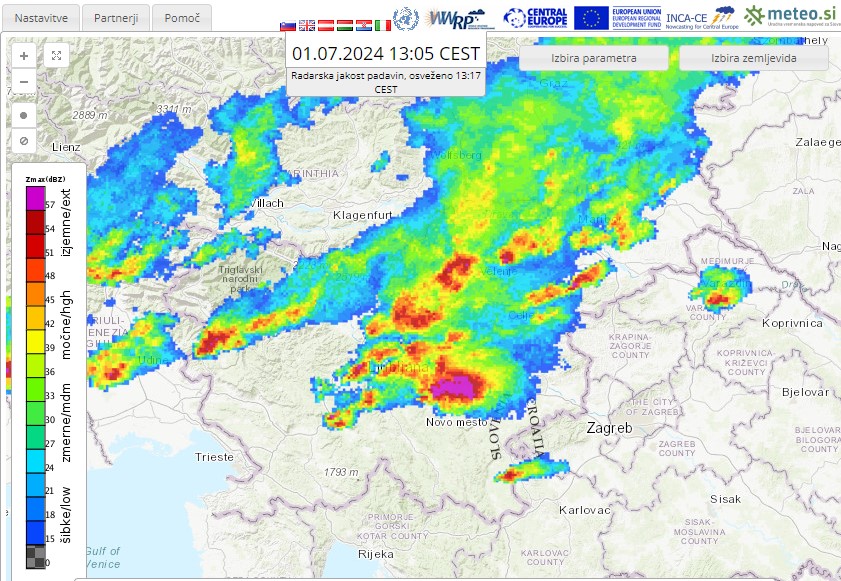 Čez Škofjo Loko je šla vijoličasta lisa. Dežja že nekaj časa nisem videl toliko, vetra nekaj, na srečo pa nič toče.