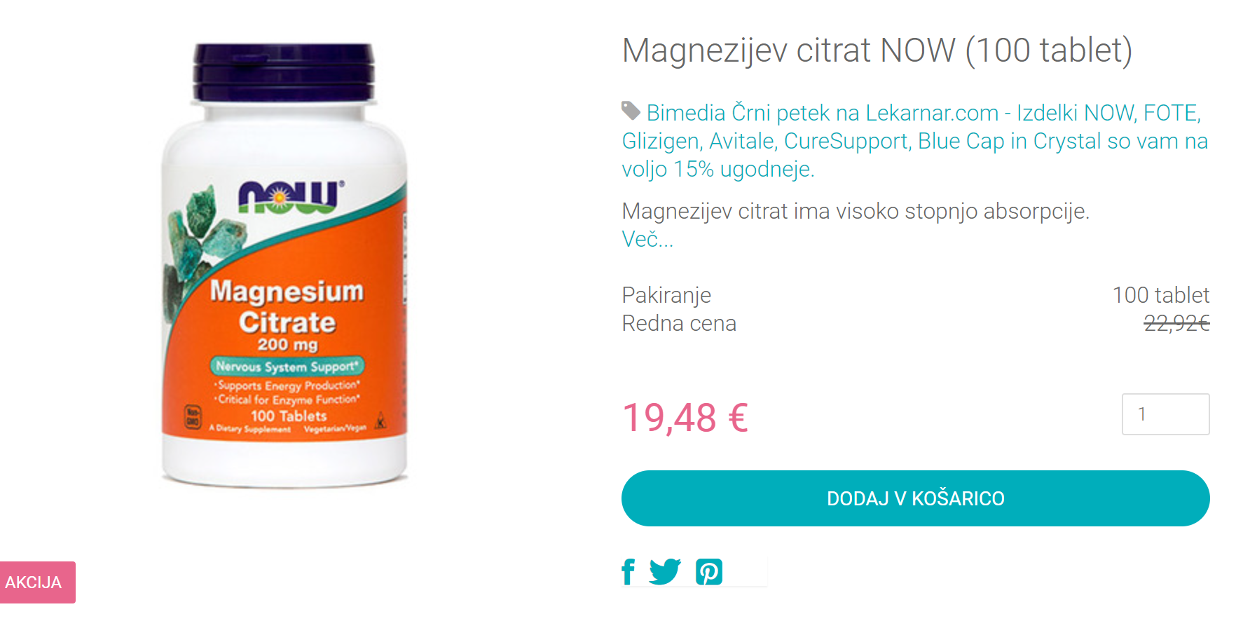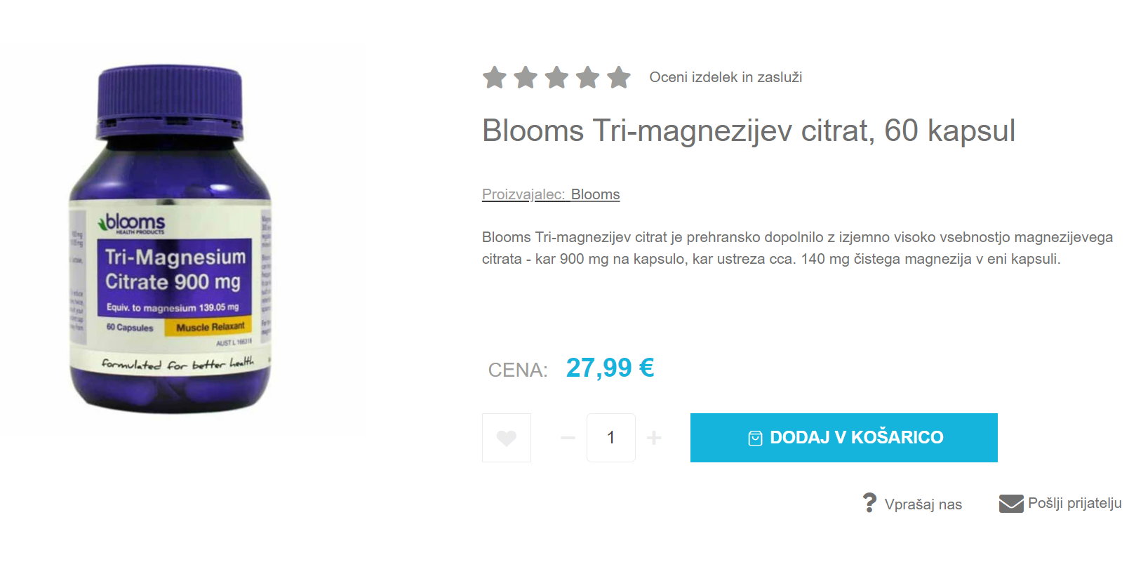 V tretji je 900 mg magnezijevega citata na kapsulo, v prvi pa 200 mg!