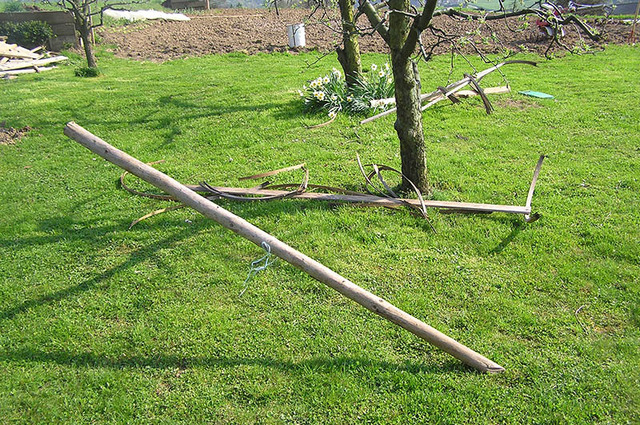 Na sliki ostanki kupole ter 15 cm globoko v zemljo zarit 1,5 m dolg ter 8 cm širok lesen kol, je pa bilo v času slikanja večji del že pospravljen: