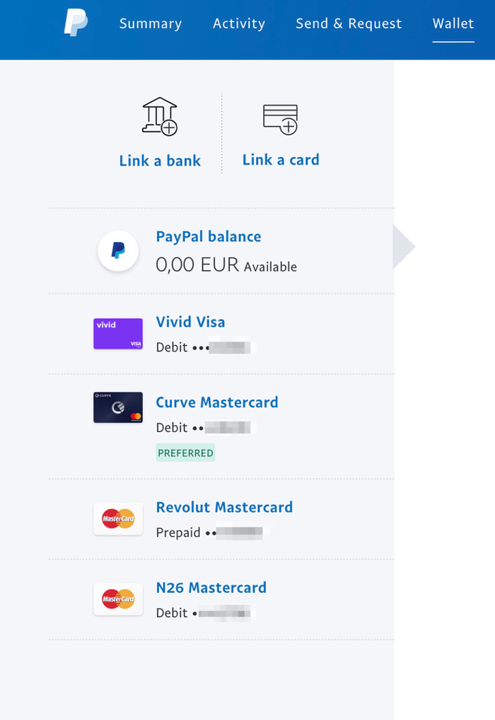 Tudi sam imam Curve kot "preferred" v PayPalu ... pa ni nobenega problema... Edino pri placevanju je treba pazit, da izberes pravo valuto... ker drugace obracuna v GBP... PayPal pa ima zelo slab menjalni tecaj ...