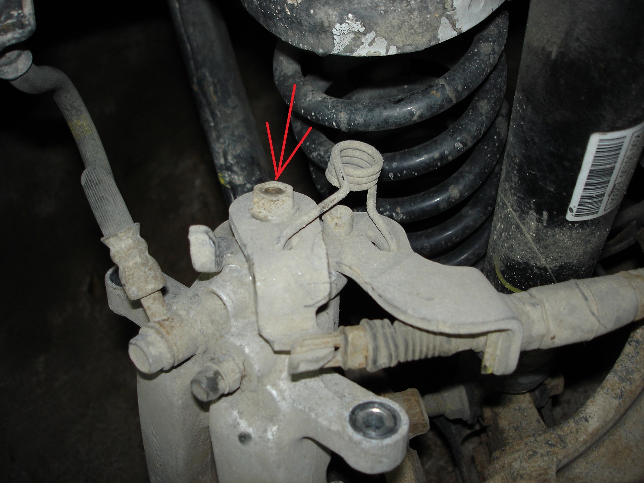 Najprej bom odstranil ohlapno zajlo za ročno, vzmet in odvil vijak (na sliki označen z rdečo puščico) potem bom pa videl kaj bo za tem.